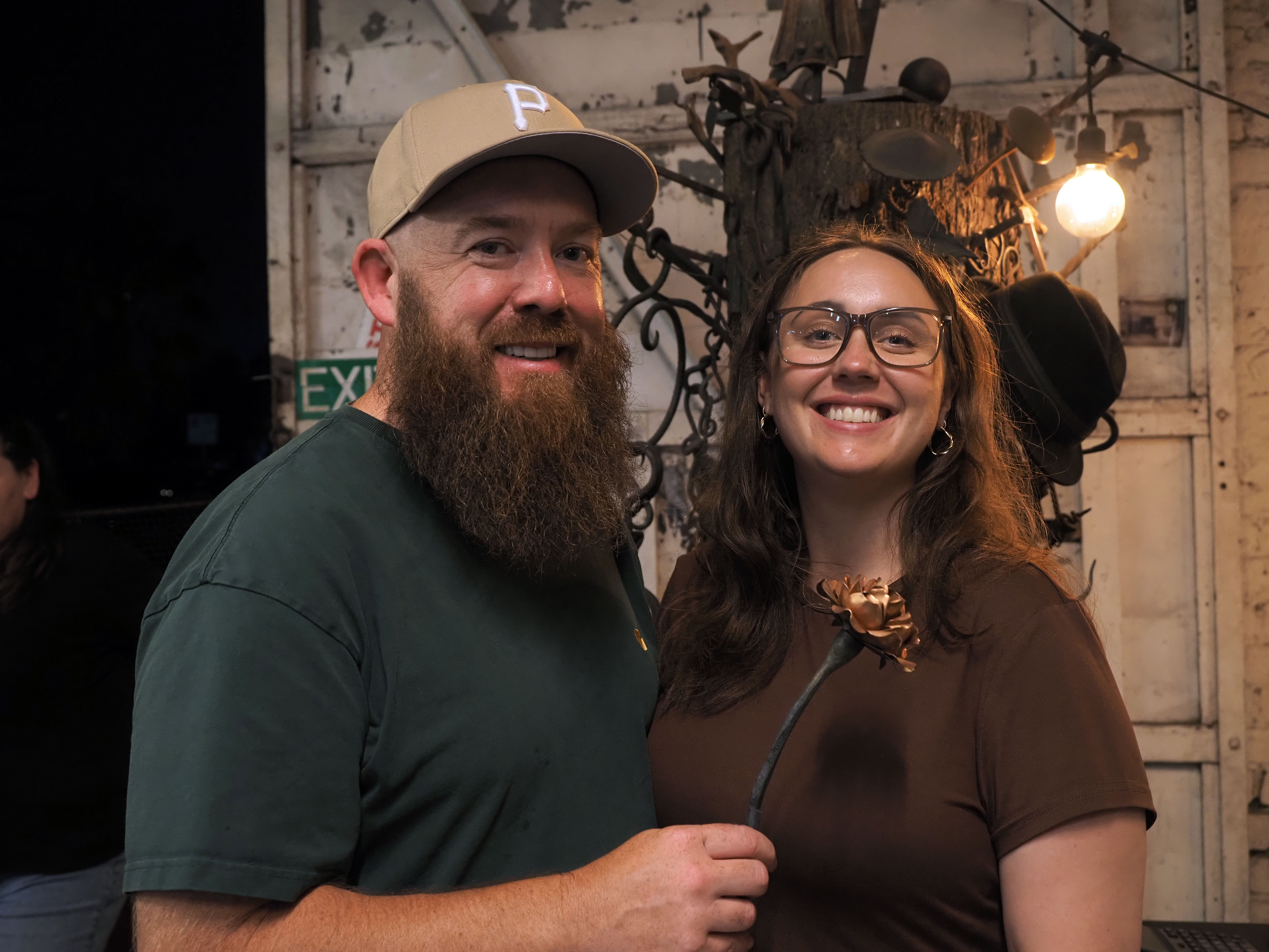 The evening starts with forging the stem of the rose from mild steel, using a hammer and anvil, before proceeding to cold forming the rose petals from copper sheeting and finishing up by assembling and affixing the petals to the stem.
